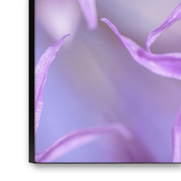 "Blumen der Zwiebelknolle (Allium) pastell" ist eine bearbeitete Makrofotografie eines kleinen Ausschnitts einer Zwiebelknolle (Allium), bei der der Fokus auf der Blüte in der Mitte liegt.
