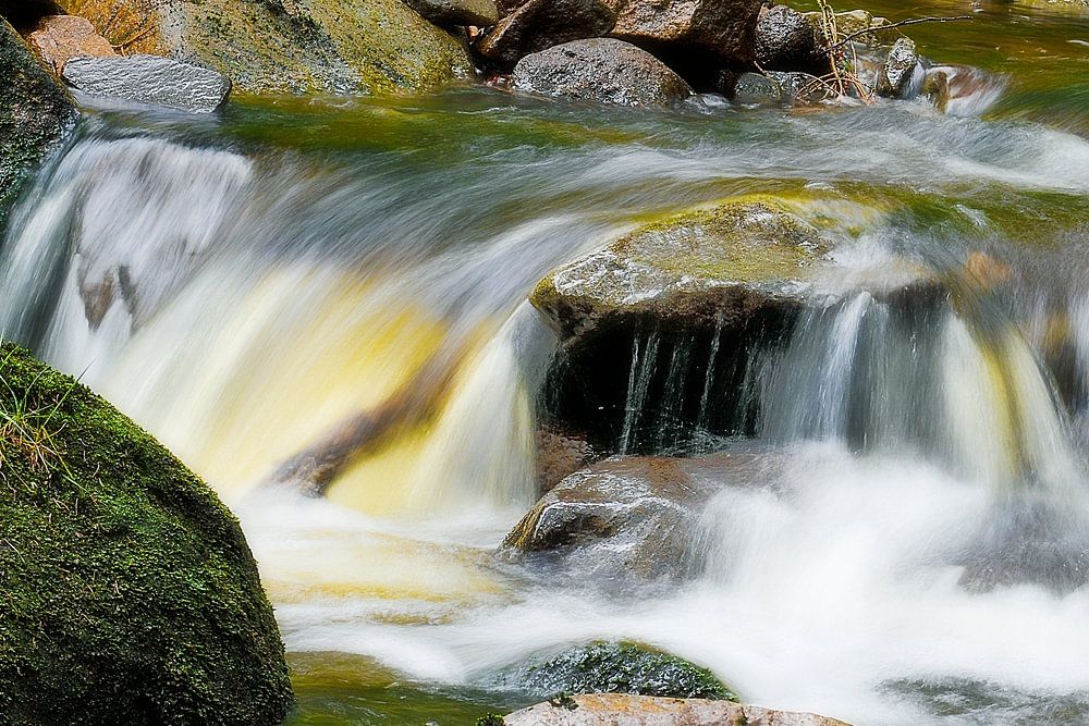 Zwischen den Felsen sucht sich der Bach seinen Weg.