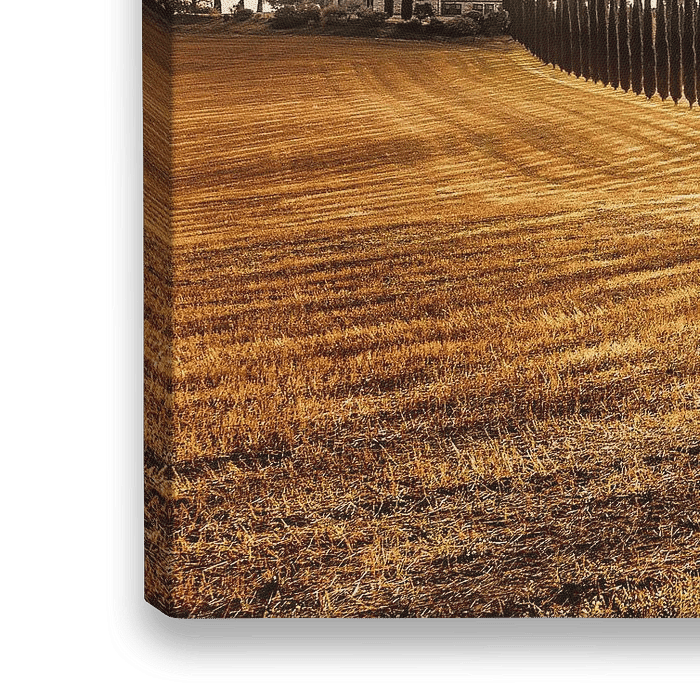 Bestelle dieses Landschafts-Wandbild Zypressenweg mit Landhaus / Bauernhof in der Toskana / Italien von Voss Fine Art Fotografie als Reproduktion auf Leinwand, Alu-Dibond, als Poster, Fototapete oder Acrylglasbild.