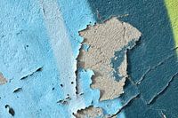abblätternde verwitterte blaue Farbe an der Fassade eines alten bereits maroden, baufälligen Hauses in Magdeburg in Deutschland