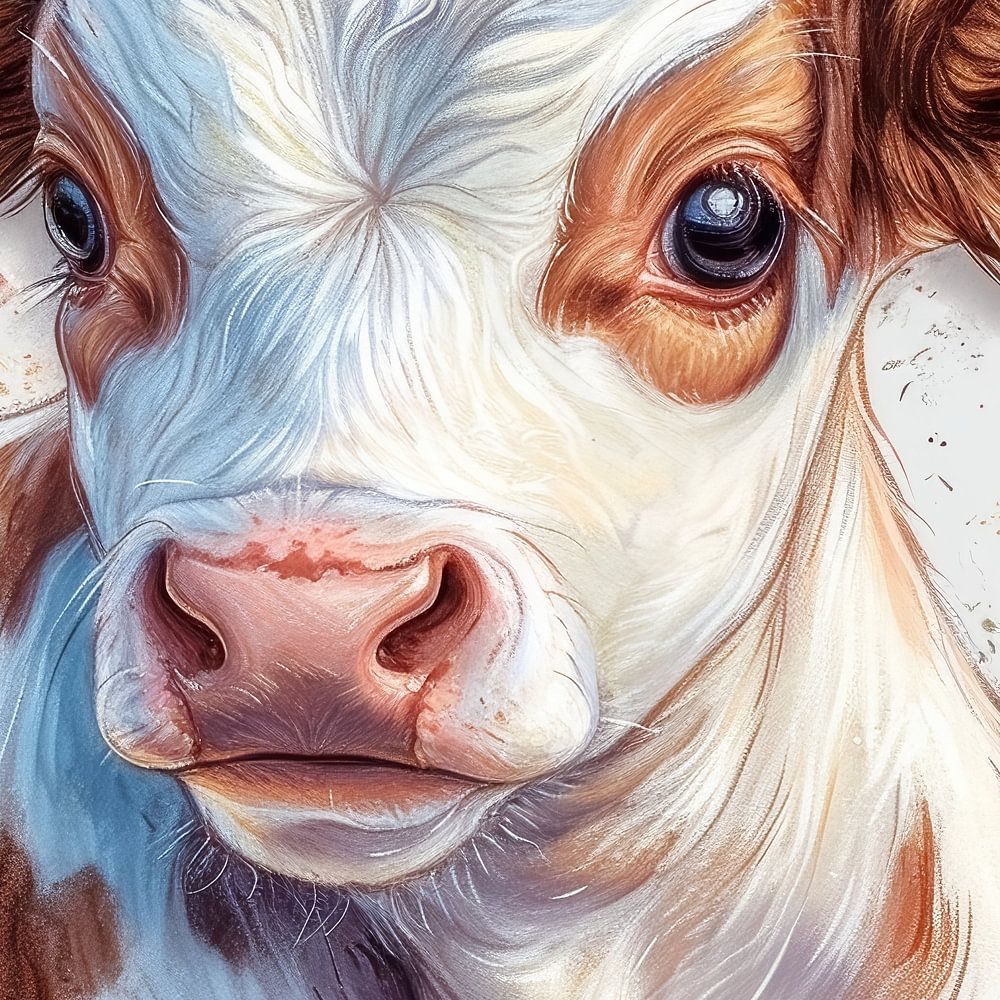 Bestelle dieses Kuh-Wandbild abstrakte Bauernhofkuh von Gelissen Artworks als Reproduktion auf Leinwand, Alu-Dibond, als Poster, Fototapete oder Acrylglasbild.