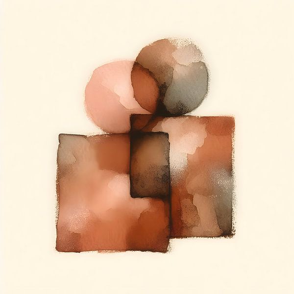 Zwei abstrakte Figuren verschmelzen zu einem intimen Tanz aus Form und Gefühl. In warmen Erdtönen entsteht eine stille Harmonie, sanft unterbrochen von einem Hauch von Rosa. Das Aquarell verleiht Tiefe und Bewegung, als hätten sich die Formen gerade erst gefunden.