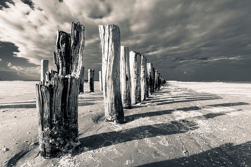 Bestelle das Foto alte Buhnen am Strand von Stephan Zaun als Reproduktion auf Leinwand, Alu-Dibond, als Poster, Fototapete oder Acrylglasbild.