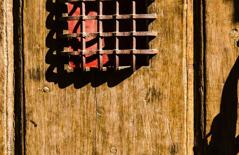 alte Holztür mit Schloss in der Altstadt von Angers Loire Frankreich