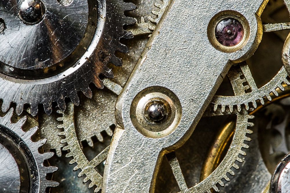 altes Uhrwerk mit Zahnrädern in der Nahaufnahme zeigt die filigranen Details der winzigen Technik