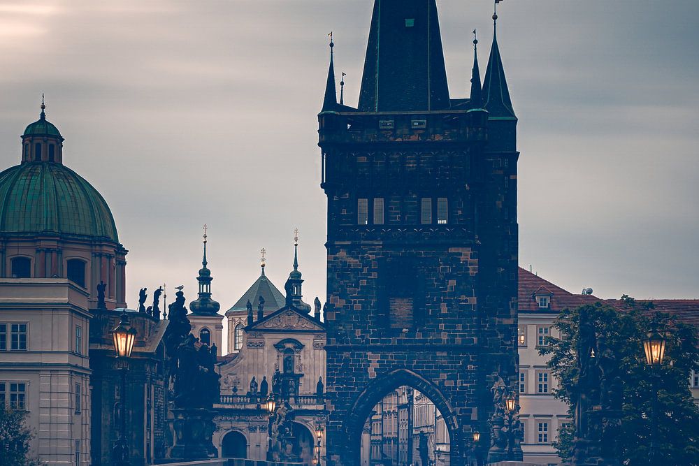 am Morgen auf einer leeren Karlsbrücke in Prag, Tschechische Republik. Launischer Stil