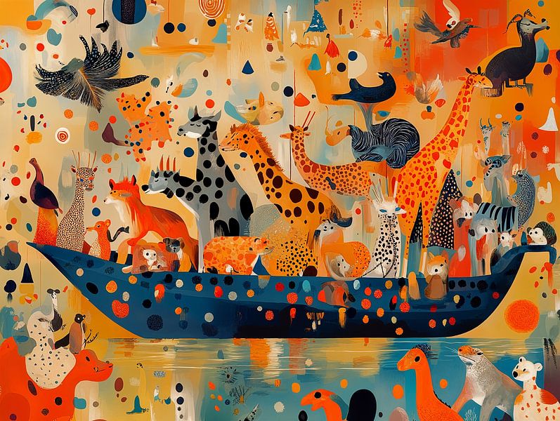 Tauche ein in eine lebendige Bilderwelt voller Fantasie, Farbe und Freude! Dieses außergewöhnliche Wandbild zeigt eine moderne Interpretation der Arche, auf der sich eine faszinierende Vielfalt an Tieren versammelt hat. Von eleganten Giraffen über neugierige Füchse bis hin zu exotischen Vögeln – jedes Detail ist ein kleines Kunstwerk…