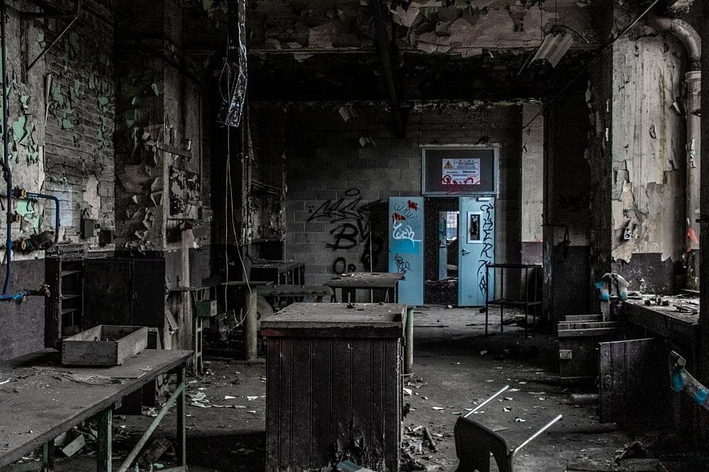 In einem ehemaligen Stahlwerk sieht die Werkstatt verlassen aus.