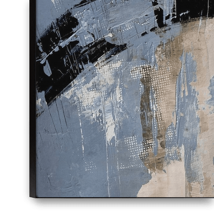 Bestelle dieses abstrakte Wandbild beige blau abstrakt von Ela Szczepaniak als Reproduktion auf Leinwand, Alu-Dibond, als Poster, Fototapete oder Acrylglasbild.