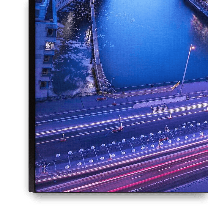 Ihre gewählte Kunst auf Leinwand, gespannt in einem Aluminiumrahmen. Schnell und einfach austauschbar für eine frische Ausstrahlung und ganz nach Ihren Wünschen.
