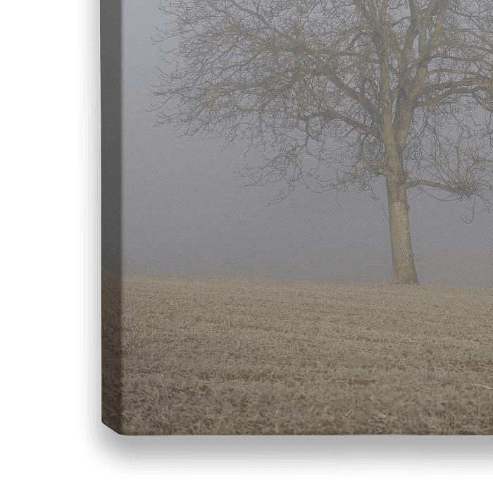 Bestelle das Foto blattloser Baum im Winter bei Nebel auf einer Wiese von Andreas Freund als Reproduktion auf Leinwand, Alu-Dibond, als Poster, Fototapete oder Acrylglasbild.