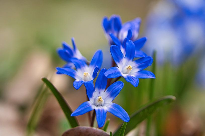 Frühblüher. Blaustern mit blauen Blüten. In der Mitte der Blüte weiß. Boten des Frühlings