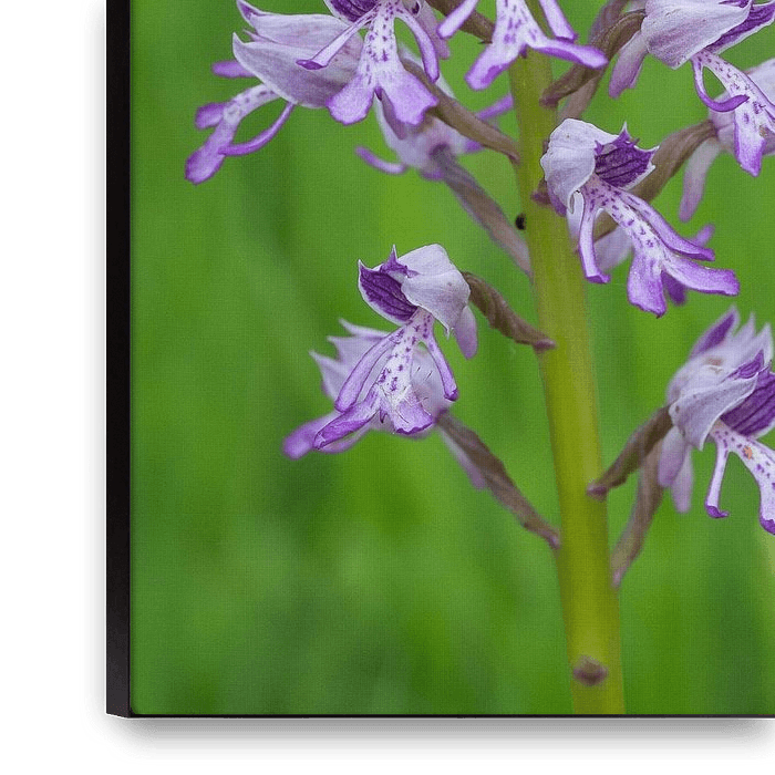 Eine der blühenden wilden Orchideen in einem Wald in der Nähe unseres Hauses. Das ist die Orchis militaris.