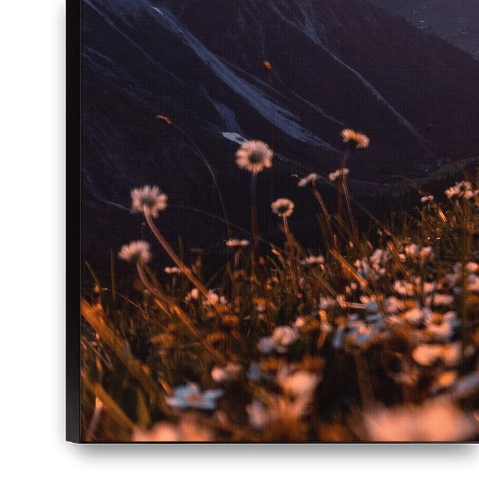 Bestelle dieses Blumen-Wandbild blumiger Sonnenaufgang über dem Kleinwalsertal von Leo Schindzielorz als Reproduktion auf Leinwand, Alu-Dibond, als Poster, Fototapete oder Acrylglasbild.