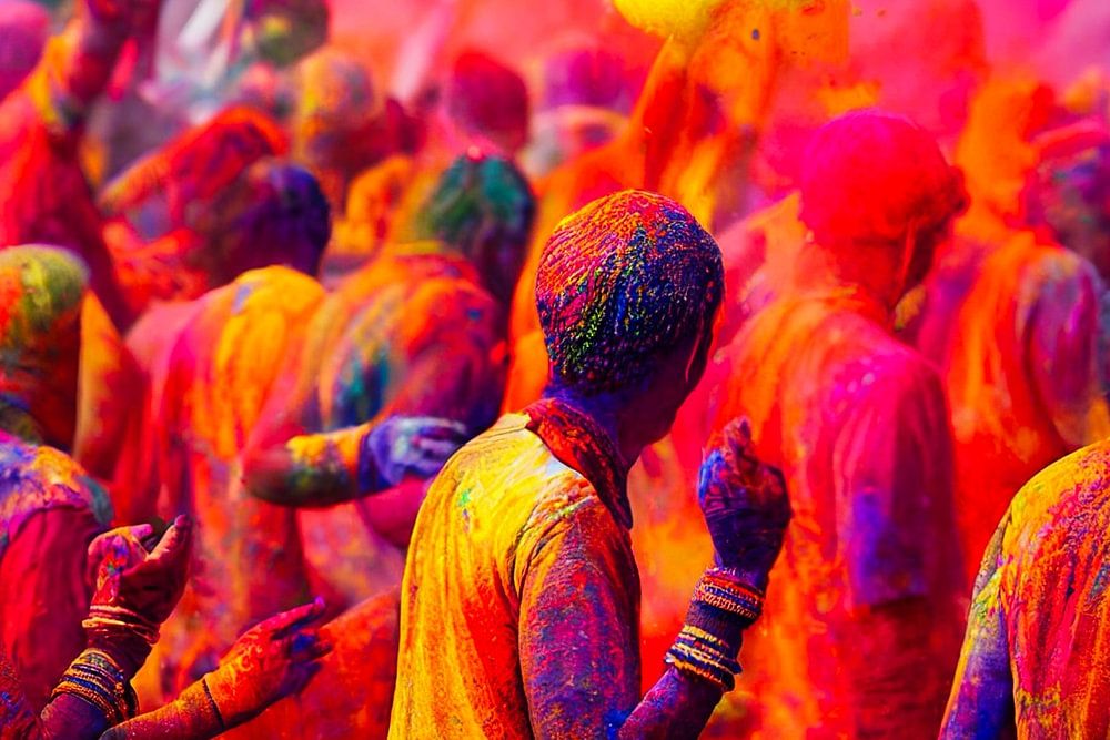 bunter Holi Indisches Festival auf der Straße, Art Illustration