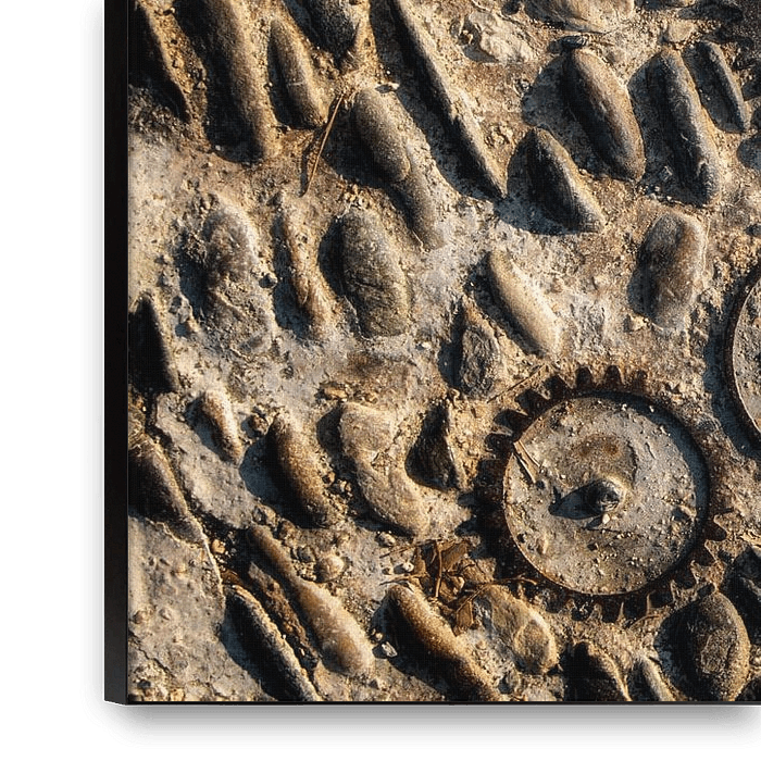 Bestelle das Foto die Zahnräder zwischen den Felsblöcken scheinen für den Antrieb zu sorgen von Hans de Waay als Reproduktion auf Leinwand, Alu-Dibond, als Poster, Fototapete oder Acrylglasbild.