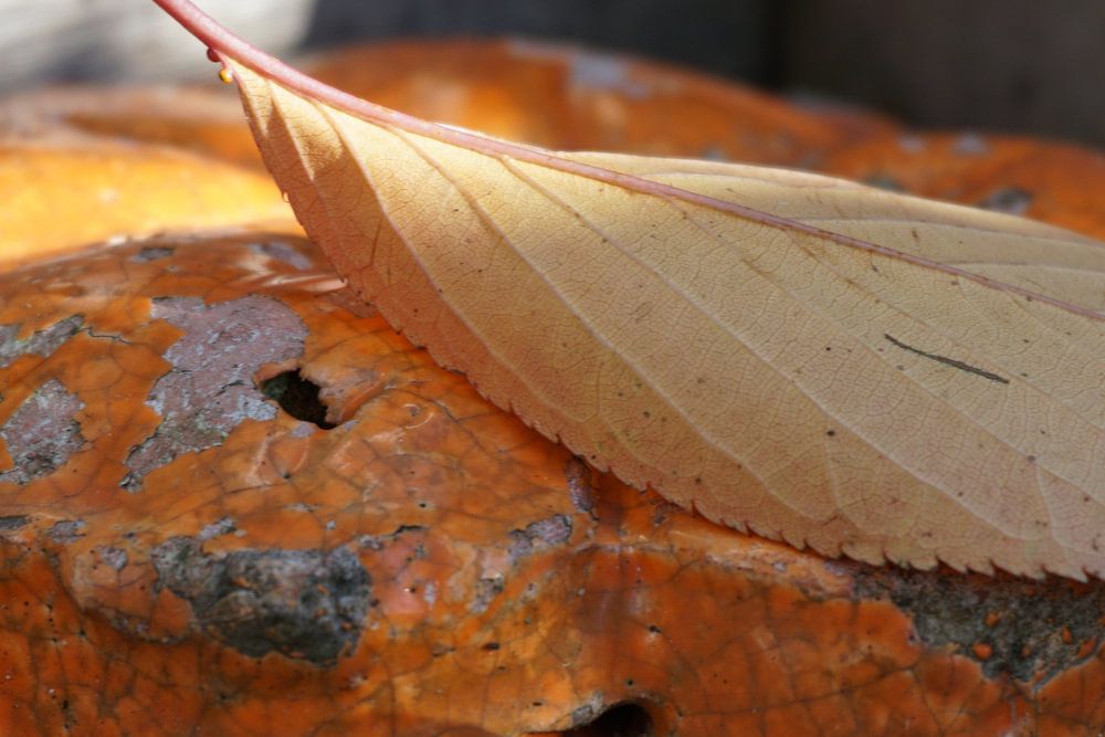 Dies ist ein Blatt an einem Objekt in der Ecke des Pflanzgefäßes.