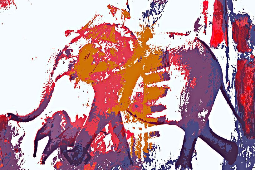Bestelle dieses abstrakte Wandbild eine Elefanten Mutter mit Kalb mixed media von Werner Lehmann als Reproduktion auf Leinwand, Alu-Dibond, als Poster, Fototapete oder Acrylglasbild.