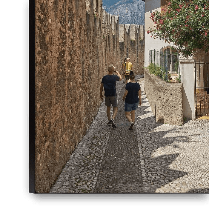 Bestelle das Foto enge Gasse entlang der Stadtmauer in Malcesine von Heiko Kueverling als Reproduktion auf Leinwand, Alu-Dibond, als Poster, Fototapete oder Acrylglasbild.