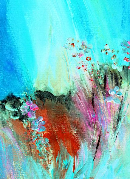 Ein farbenfrohes und expressives Blumenbild für den Wohnbereich. Es strahlt Optimismus und Heiterkeit aus. Die Schönheit der Natur bietet immer wieder unerschöpfliche Inspirationsquellen. Blumenfantasien werden kunstvoll in Szene gesetzt..Blumen, Blüten, Blätter..