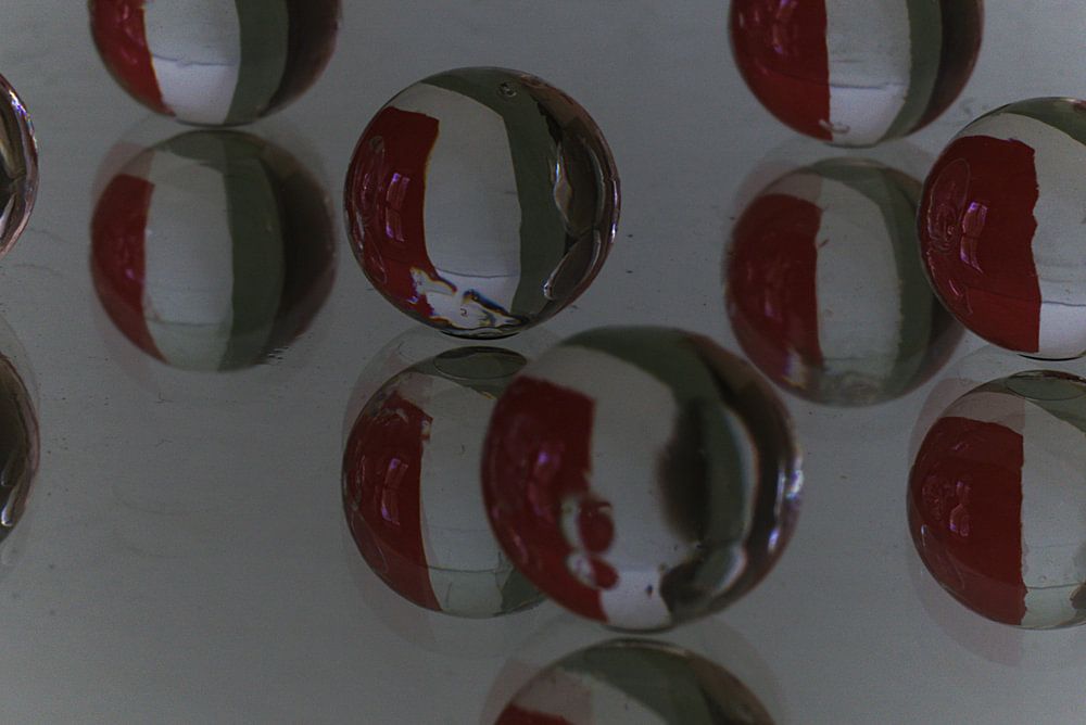 Kugeln reflektieren die Farben der italienischen Flagge, und auch in einem Spiegel. Forza Italia!