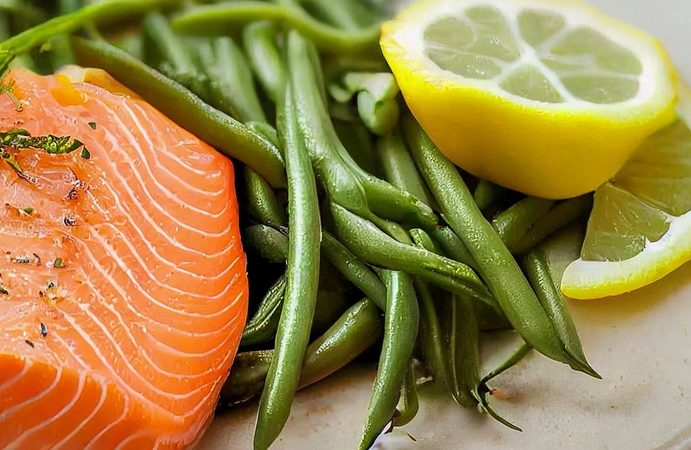 frischer Lachs mit Grünen Bohnen Illustration 04
