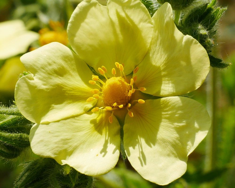 Gerade Stachelbeere, eine Randbeerpflanze und auch eine Wildpflanze. Die Sonne gibt der voll blühenden Pflanze ein zusätzliches Element.