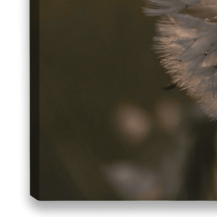 Nahaufnahme eines Löwenzahns, der im goldenen Licht der aufgehenden Sonne leuchtet