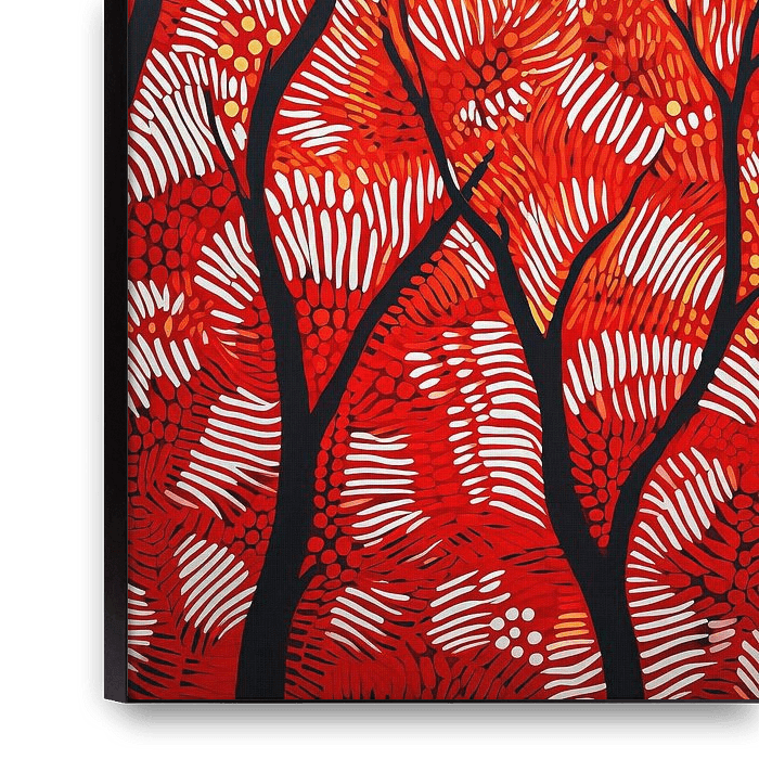 Die von den Aborigines inspirierte pointillistische Serie ist ein tiefes Zeugnis für den Geist der natürlichen Landschaft und ein Teppich künstlerischen Ausdrucks. Diese Kollektion lädt den Betrachter zu einer eindringlichen Pilgerreise durch Leinwände ein, die von uralten Erzählungen und dem rhythmischen Herzschlag der Erde pulsieren.…