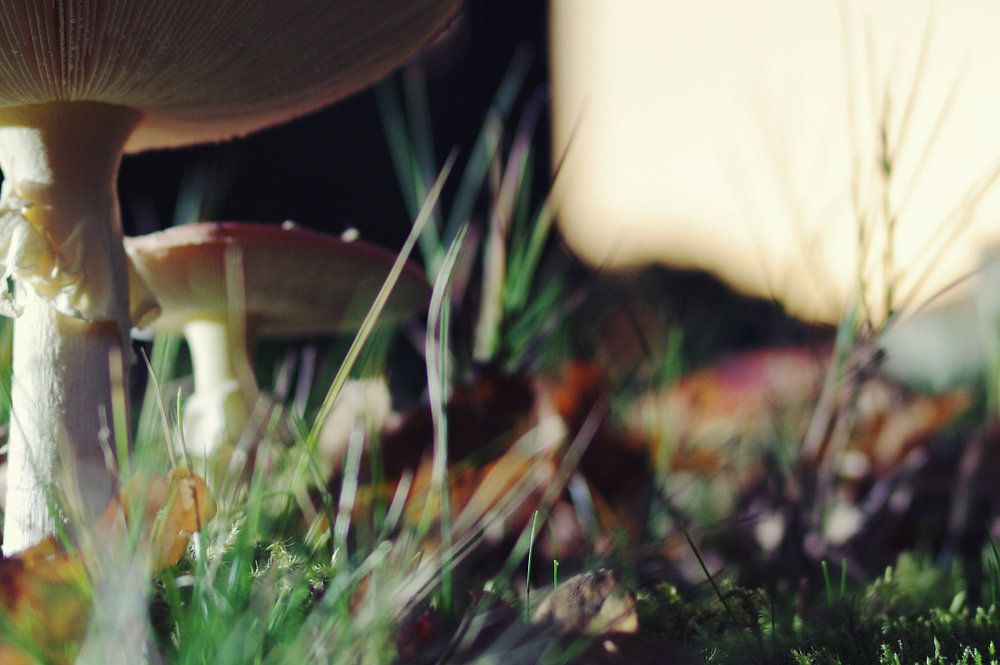 detailopname van paddestoelen, opgenomen op een mooie herfstdag aan de kanaal in Nieuw Amsterdam