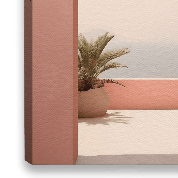 Ein bezaubernder Ausschnitt aus einem Gebäude auf Ibiza zeigt ein harmonisches Spiel aus rosa Farbtönen. Die mediterrane Sonne beleuchtet sanft die Fassade, während die rosa Farben eine warme und einladende Atmosphäre schaffen. Ein Hauch von Inselcharme, eingefangen in einer einzigen Komposition.