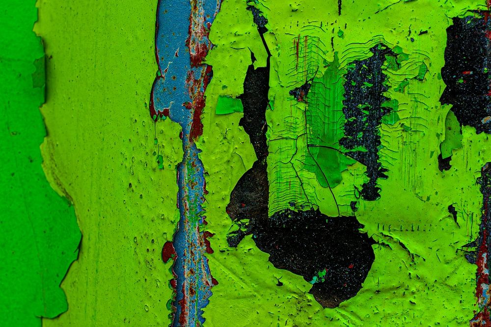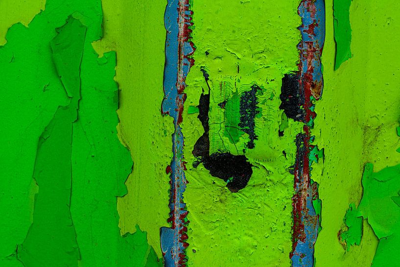 Detail aus einer rostigen Platte in verschiedenen Grüntönen. Wenn Sie Grün mögen, wird Ihnen dieses Foto sicherlich gefallen. Die Farbe Grün vermittelt ein Gefühl von Ruhe, Ausgeglichenheit und Harmonie. Grün wirkt beruhigend auf die Augen und ist daher eine gute Wahl für Ihre Inneneinrichtung. Schön auf einer hellen Wand in einem…
