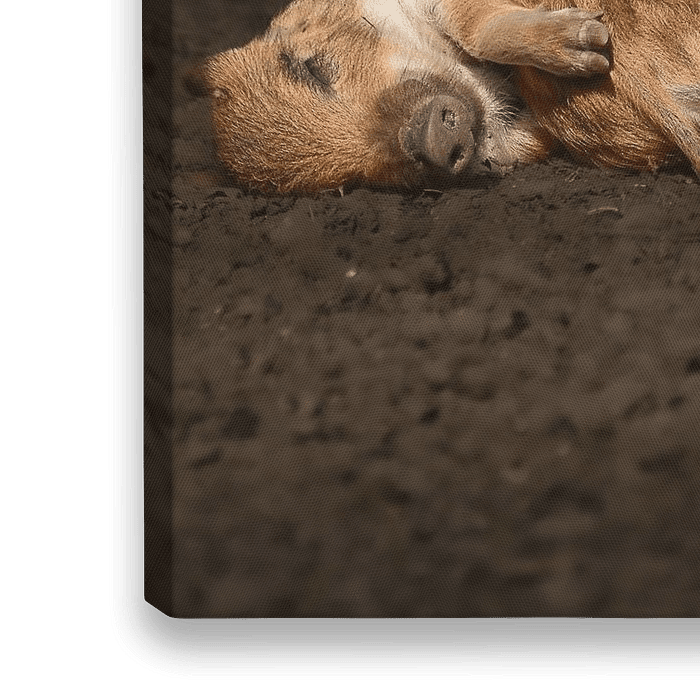 Müde vom Spielen. Diese Frischlinge lassen sich nach einer rauen Spiel-Session müde in die Sonne fallen
