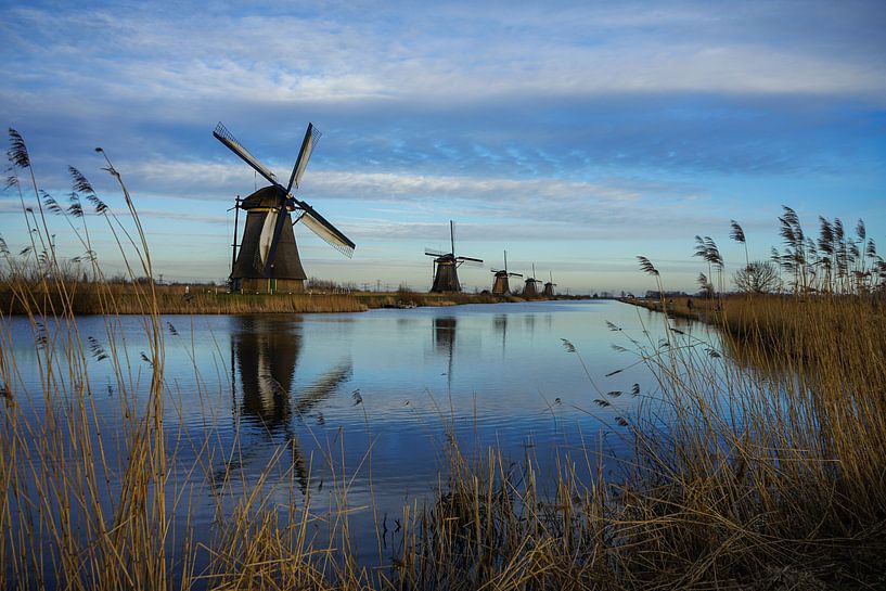 Bestelle dieses Landschafts-Wandbild kinderdijk molens von Angelique Rademakers als Reproduktion auf Leinwand, Alu-Dibond, als Poster, Fototapete oder Acrylglasbild.