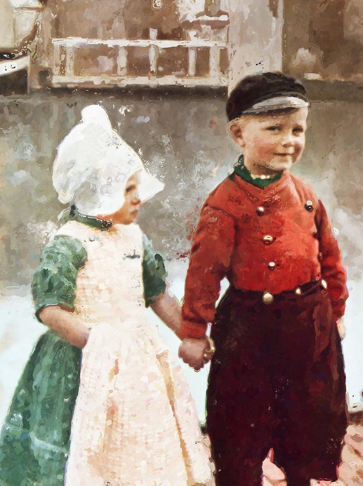 Kinderen in oud Volendams Kostuum rond 1930