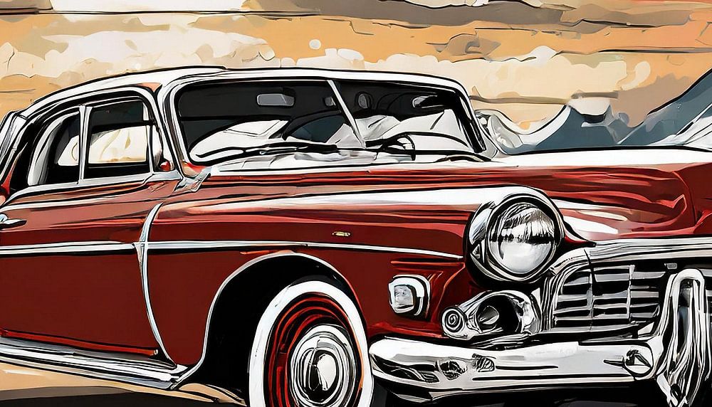 klassisches altes Muscle-Car auf der Straße, Kunstdesign