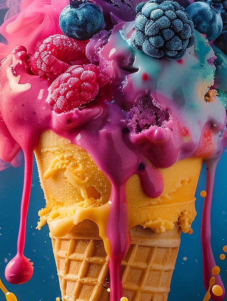 köstliche Eiscremes, Eisbecher in verlockend leuchtenden Farben in der Eisdiele, im Restaurant oder einfach zu Hause.
