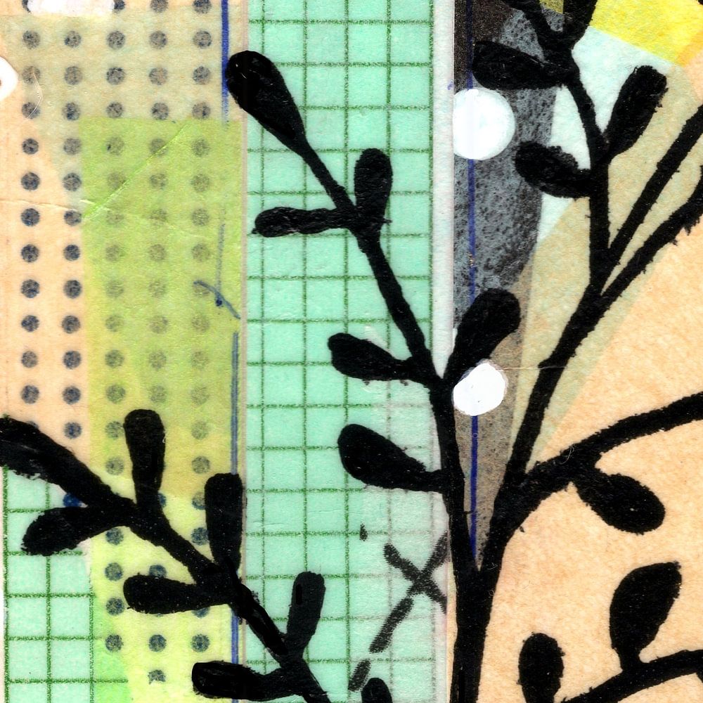 künstlerische Hintergrundcollage mit Blumen und Pflanzenelementen
