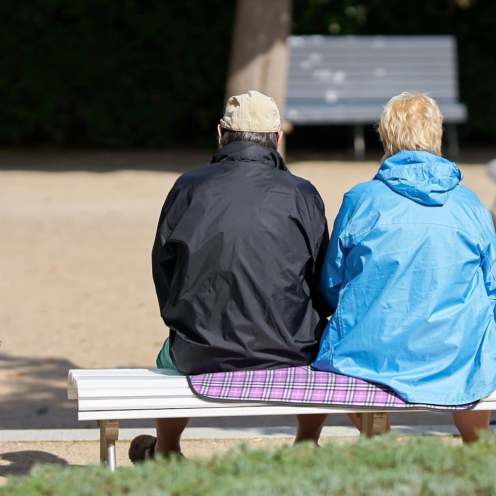 Rentnerehepaar im Kurpark von Heringsdorf an der deutschen Ostseeküste