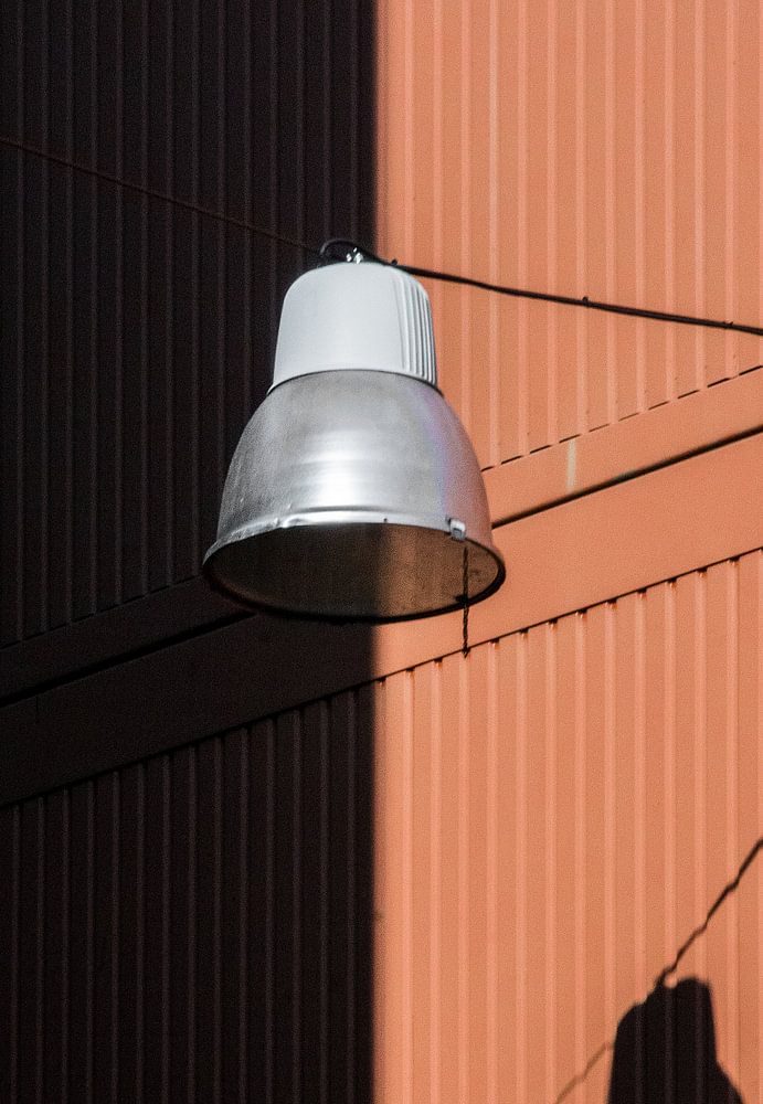 Lampe im Schirm gegen orange Wand