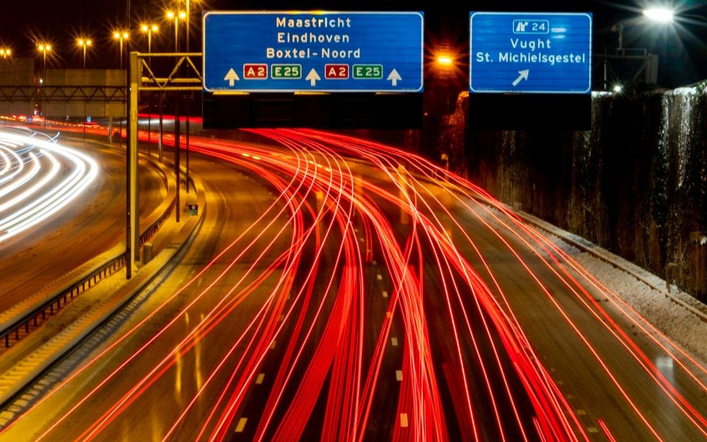 Ein schönes Autobahnfoto mit roten Lichtern.
