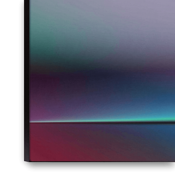 Ihre gewählte Kunst auf Leinwand, gespannt in einem Aluminiumrahmen. Schnell und einfach austauschbar für eine frische Ausstrahlung und ganz nach Ihren Wünschen.