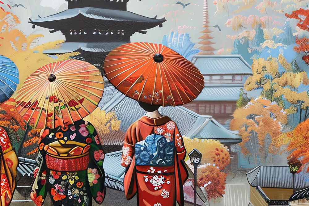 Digitales Bild des malerischen Japans mit fiktiver Landschaft oder Person.