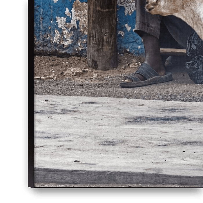 Bestelle das Foto man met geiten von rene schuiling als Reproduktion auf Leinwand, Alu-Dibond, als Poster, Fototapete oder Acrylglasbild.