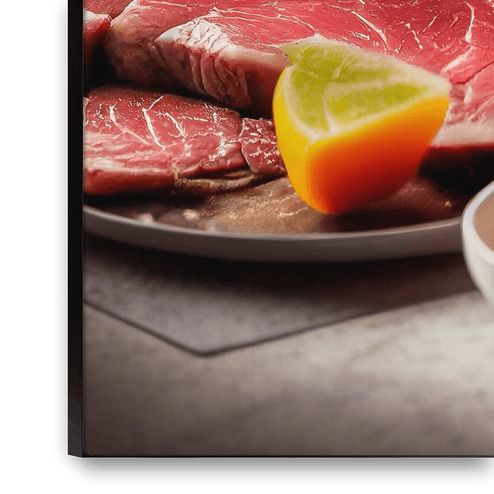 Ihre gewählte Kunst auf Leinwand, gespannt in einem Aluminiumrahmen. Schnell und einfach austauschbar für eine frische Ausstrahlung und ganz nach Ihren Wünschen.