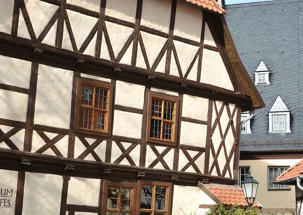 schiefes Haus in der historischen Altstadt von Wernigerode am Rande des Nationalpark Harz in Deutschland. Das schiefe Haus aus dem Jahre 1680 senkte sich auf einer Seite im laufe der Jahrhunderte immer weiter ab. Heute wird das Gebäude als Museum genutzt.