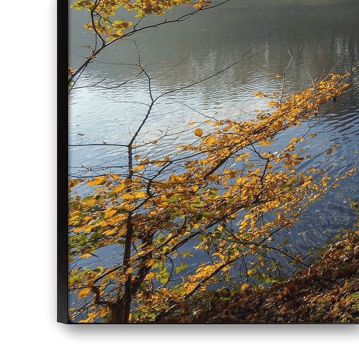 An einem schönen nebligen Morgen entstand dieses typische Herbstbild mit noch etwas Morgennebel im Hintergrund, umgeben von den schönen Herbstfarben