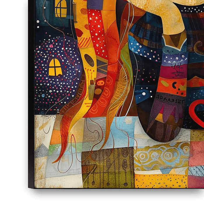 Ihre gewählte Kunst auf Leinwand, gespannt in einem Aluminiumrahmen. Schnell und einfach austauschbar für eine frische Ausstrahlung und ganz nach Ihren Wünschen.