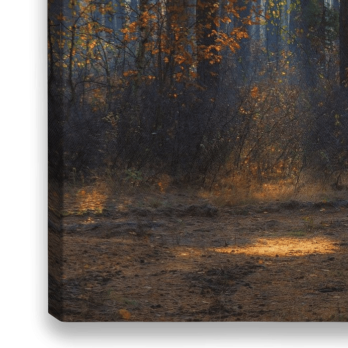 Bestelle dieses Landschafts-Wandbild sonniger Herbstwald von Mykhailo Sherman als Reproduktion auf Leinwand, Alu-Dibond, als Poster, Fototapete oder Acrylglasbild.