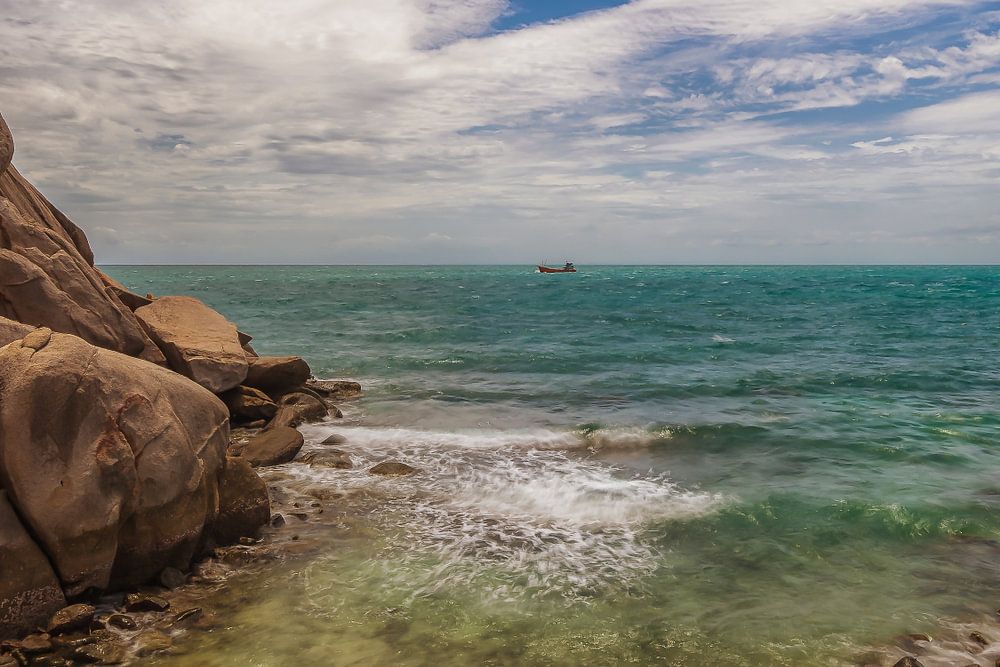 starend meisje richting zee bij Koh Tao Thailand